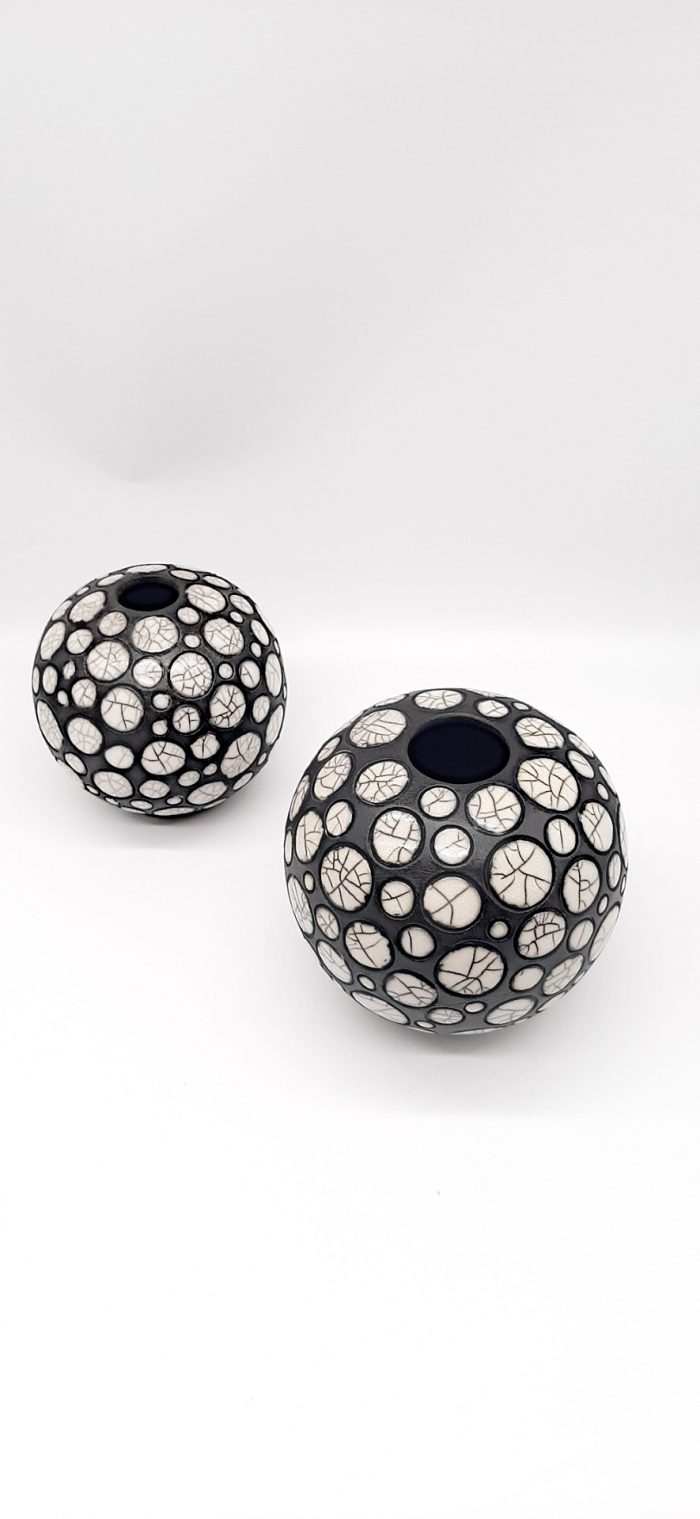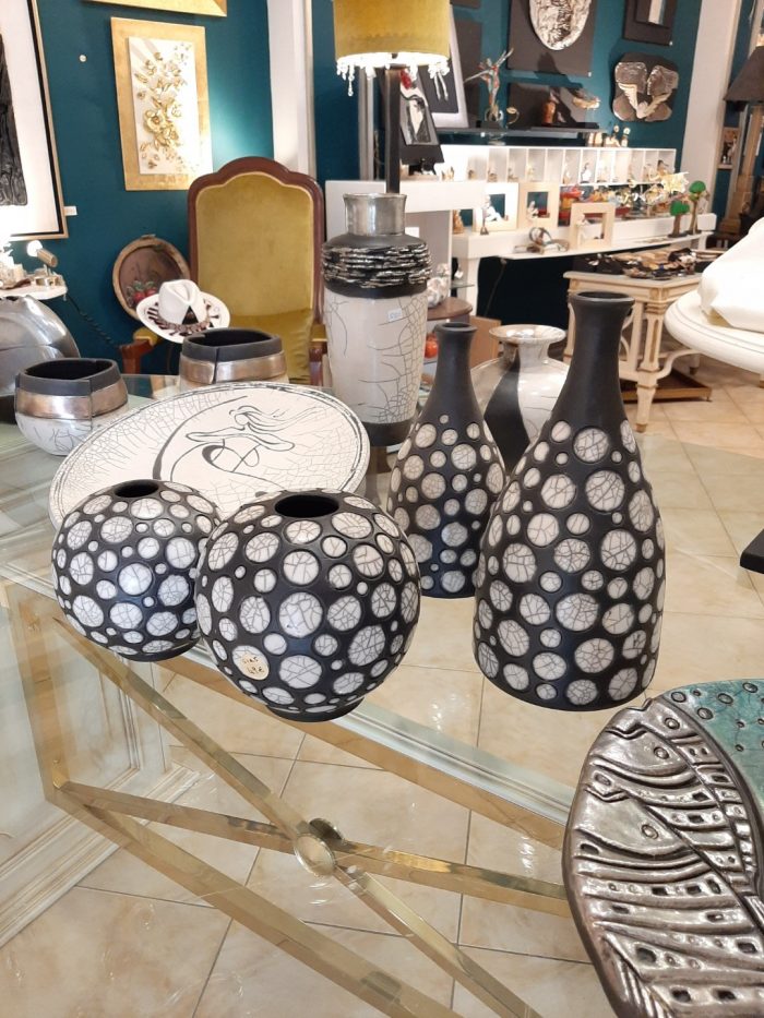 with meralic acids. The presence of silver nitrate make the random, uncontrolled striations that are characteristic of Raku.
