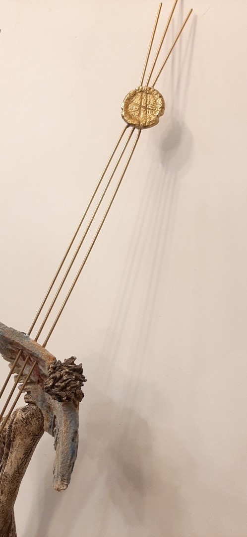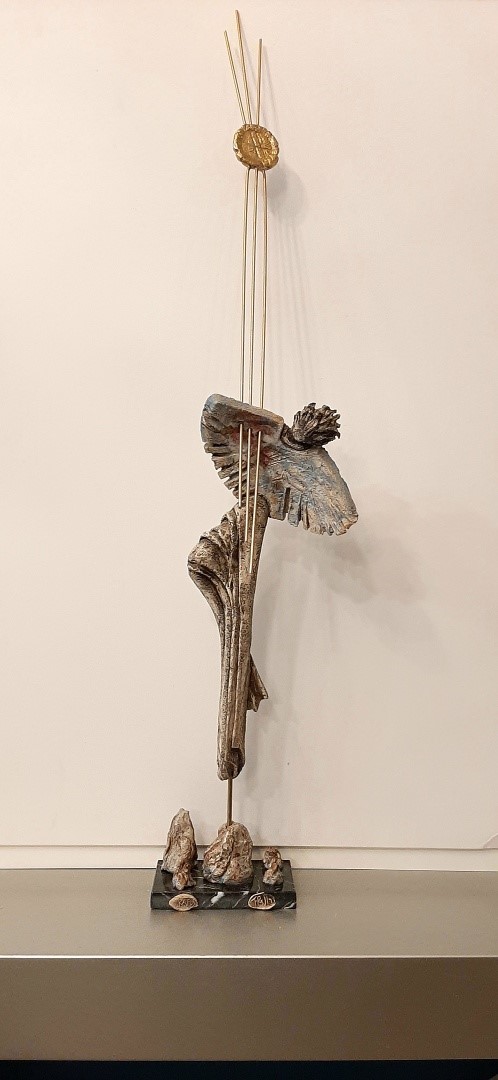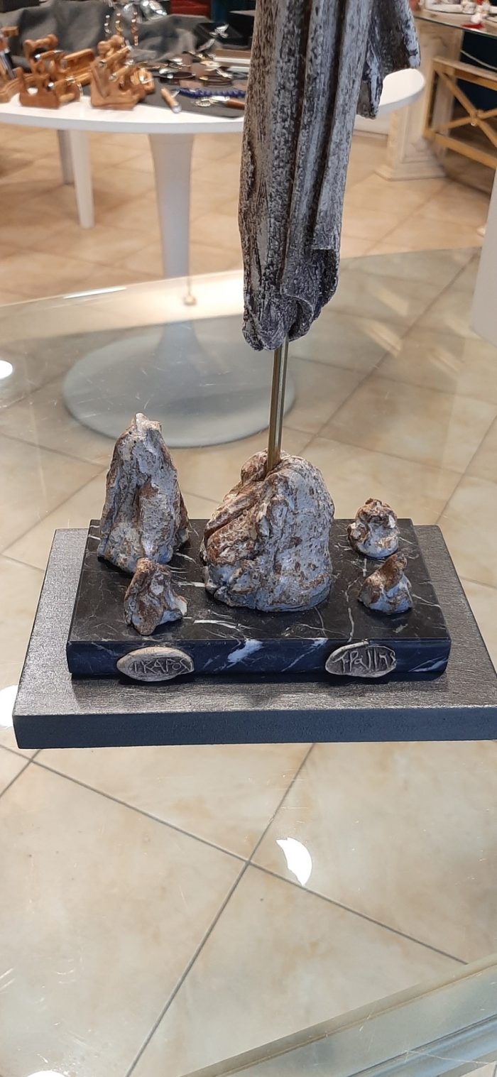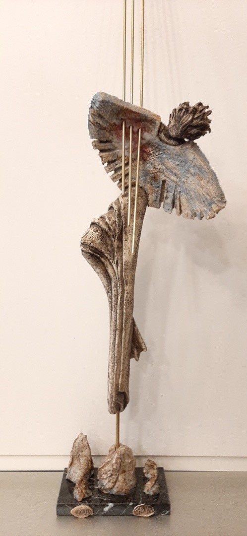 Ceramic sculpture with a colorful pattern,  inspired by the story of the mythical Icarus, who, flying close to the sun with his waxy wings, melted from the sun’s rays and fell into the sea, wich was called Icarian sea.