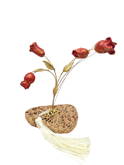 decorated with metalic 2025 and tassel on a natural stone from Pagasitikos golf, to wish a happy new year to your friends and partners.