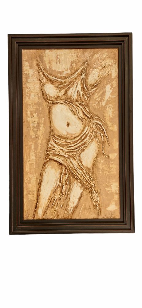 Handmade 3d wall ceramic painting by Pinelopi Oikonomidou-Nempi. The painting unrepresented woman’s body that refers to fertility.