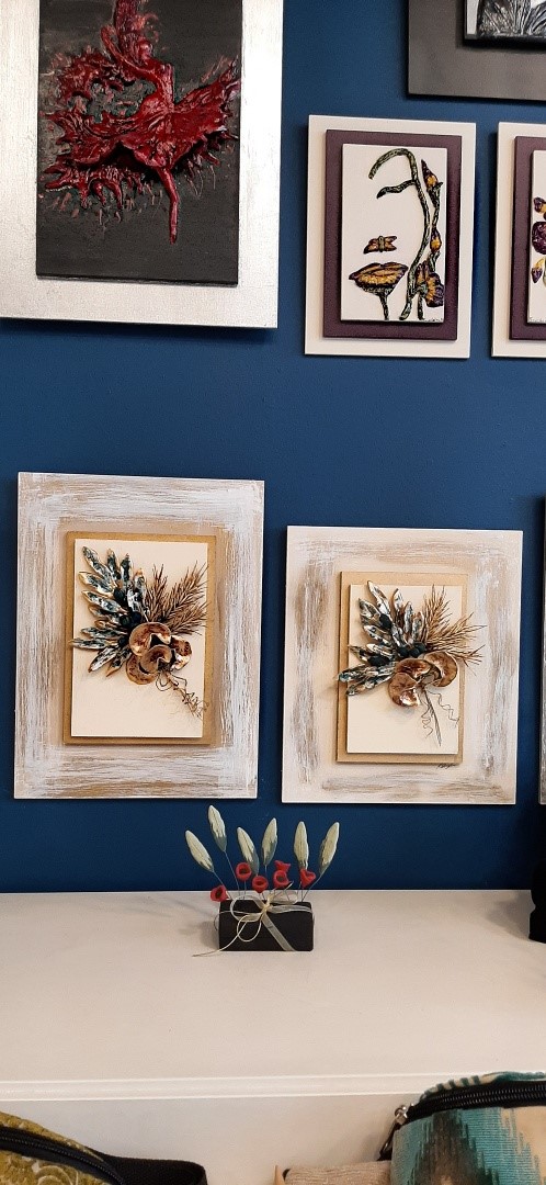 Handmade wooden panel with ceramic bouquet of olive branch , ear and flower