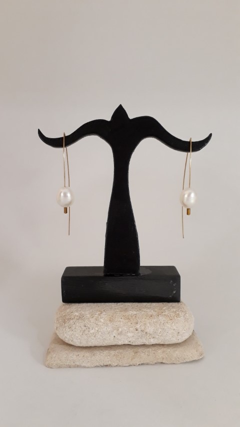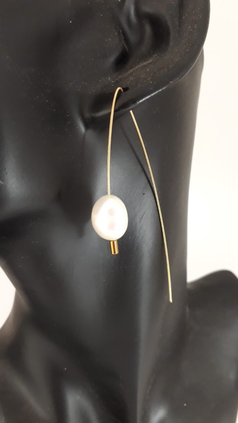 ΧΑΡΑΚΤΗΡΙΣΤΙΚΑ: Σκουλαρίκια από ασημένια και επιχρυσωμένη βέργα και μαργαριτάρι γλυκού νερού. Χειροποίητη, ελληνική δημιουργία από την Ευτυχία.