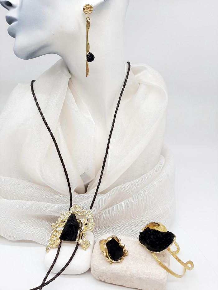 BRASS EARRINGS TIDE WITH HANDMADE BLACK COLOR SYNTHETIC STONE