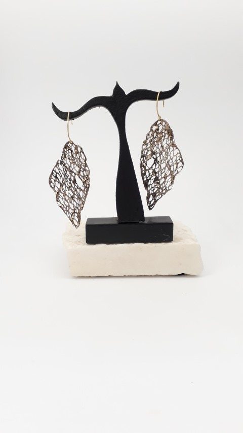 Brass earrings,with bronze color patina and gold plated silver hoop. Nickel free. Greek handmade item by Tina.