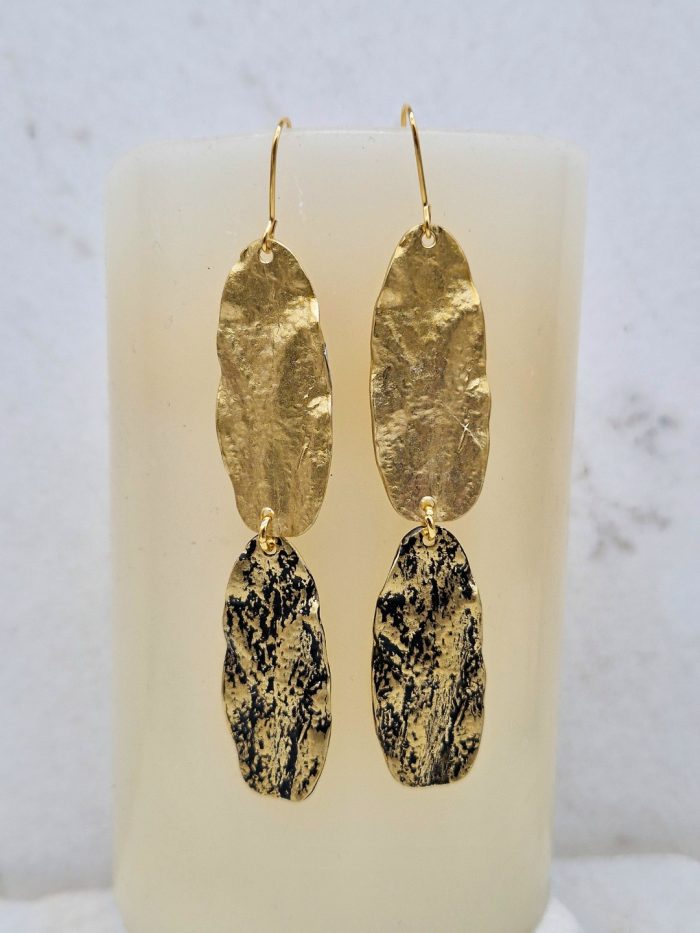 EARRINGS WITH GOLDEN-BLACK COLOR BRASS MOTIFS AND BRONZE HOOKS