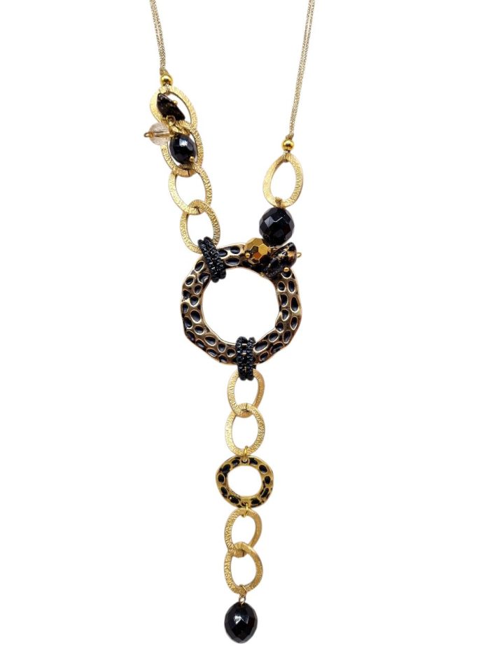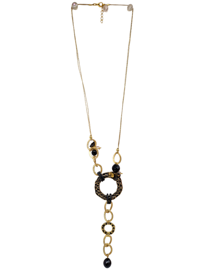 HANDMADE BRASS FORGED RINGS NECKLACE. BLACK