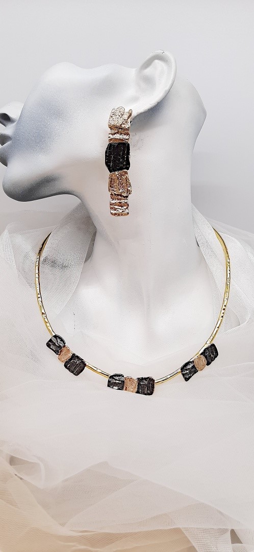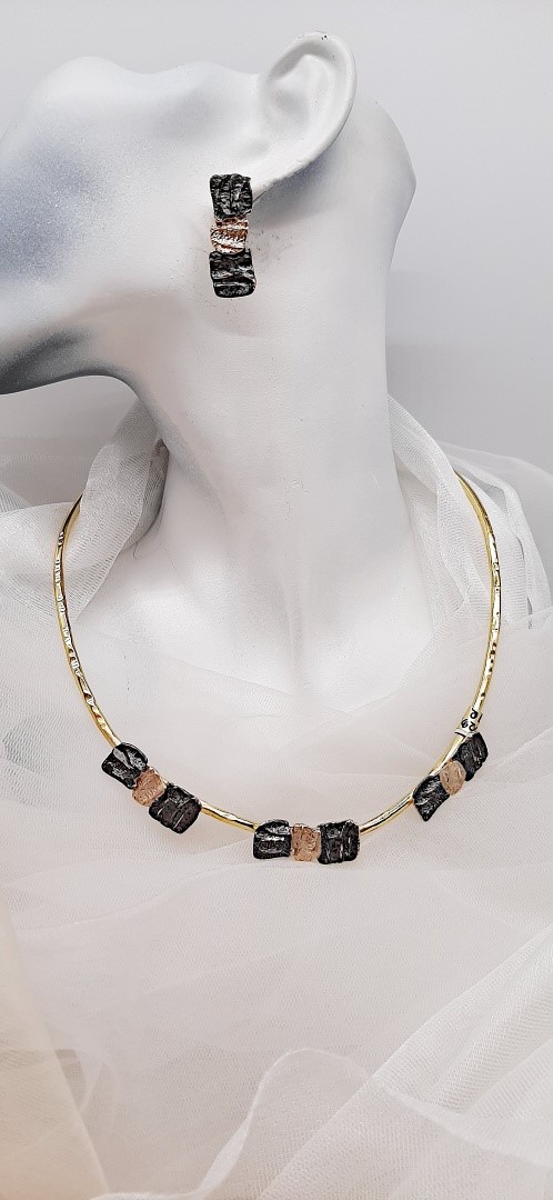Golden and black brass short necklace.
