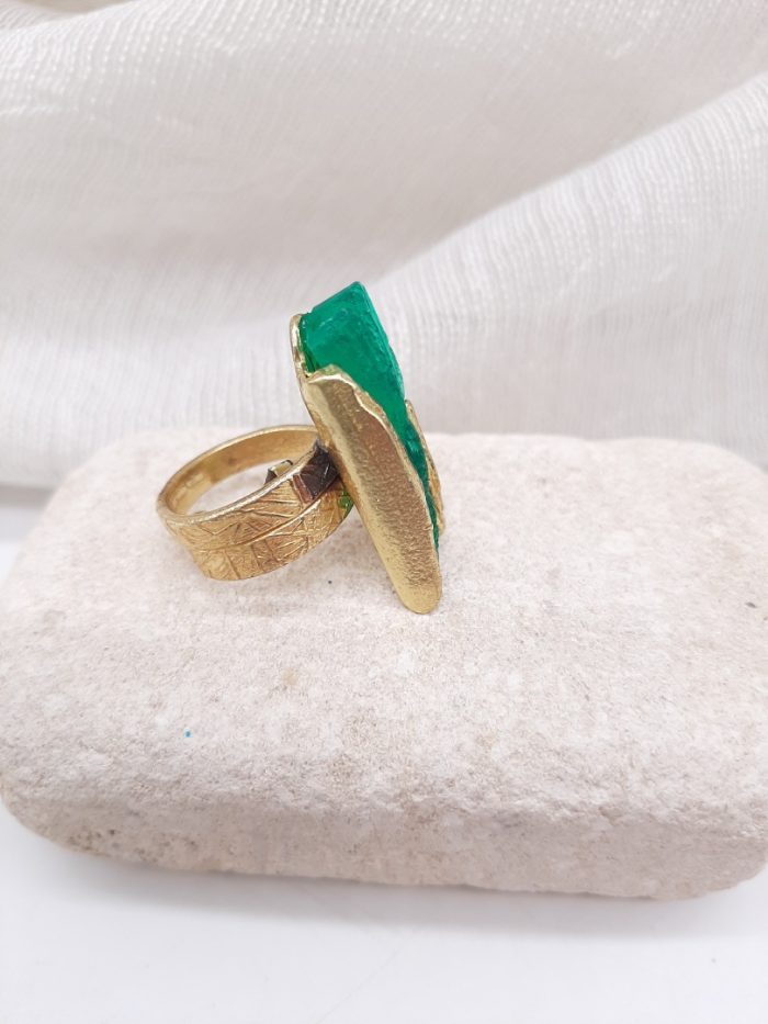 BRASS RING TIDE WITH HANDMADE GREEN COLOR SYNTHETIC STONE