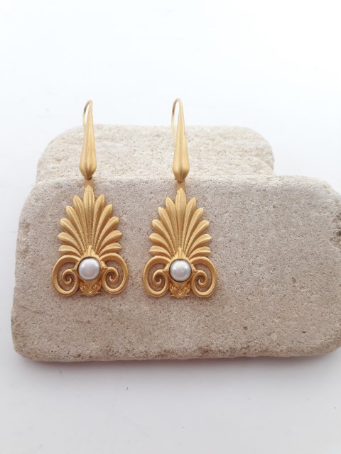 Σκουλαρίκια από ασήμι 925, διπλή επιχρύσωση 24 καρατίων και μαργαριτάρι γλυκού νερού. Συνδυαζεται τέλεια με το κολιέ “ΑΚΡΟΚΕΡΑΜΟ.