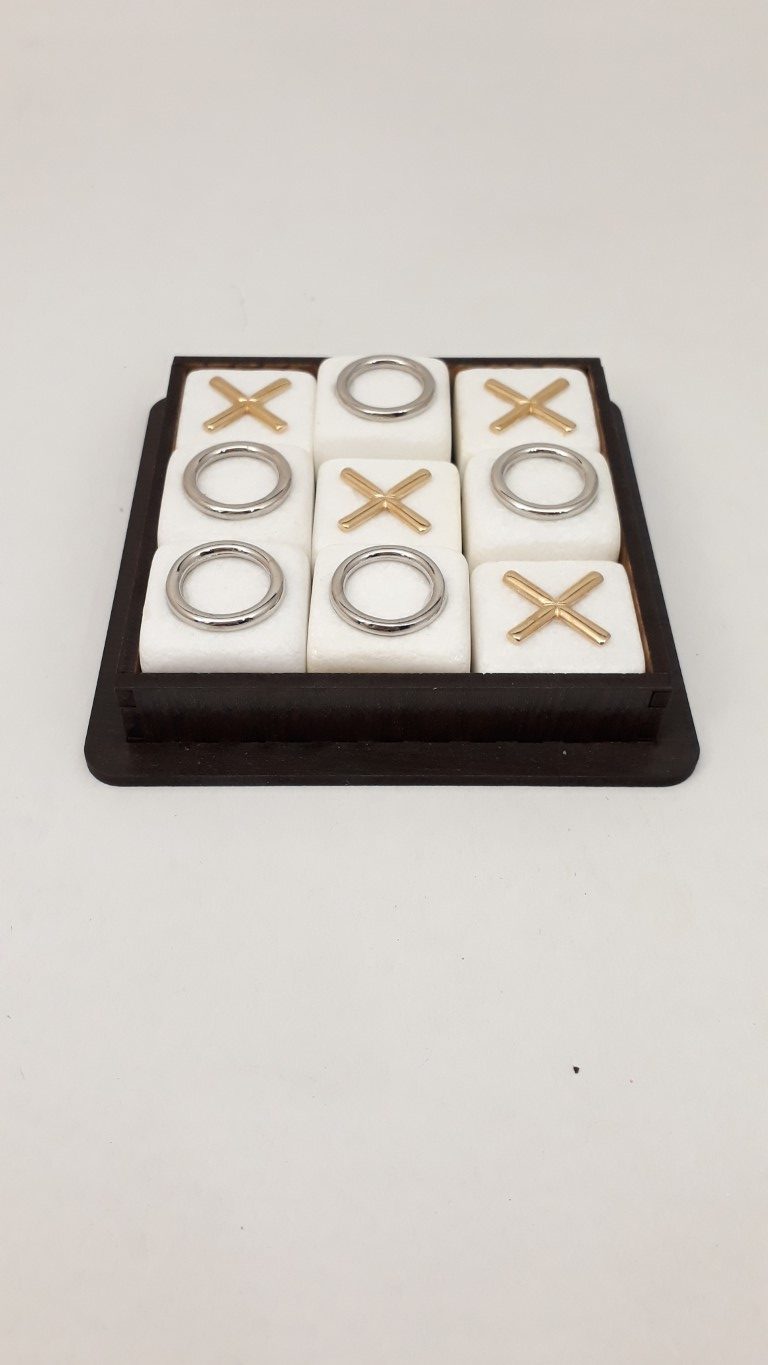 The timeless “TRILIZE” toy(TIC-TAC-TOE) made of white marble in a classic design made of durable zamac metal alloy, inside a wooden (mdf) case. Greek, handmade creation.