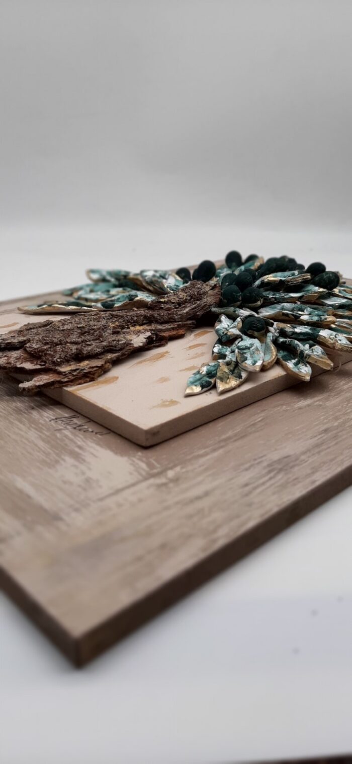 Επιτοίχιος πίνακας με ταμπλό από ξύλο και χειροποίητο κεραμικό δέντρο ελιάς με φυσικό κορμό.