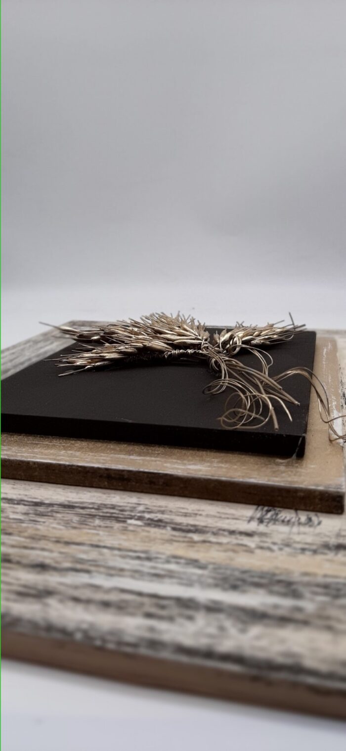 Επιτοίχιος πίνακας με ταμπλό από ξύλο και χειροποίητα κεραμικά στάχια.