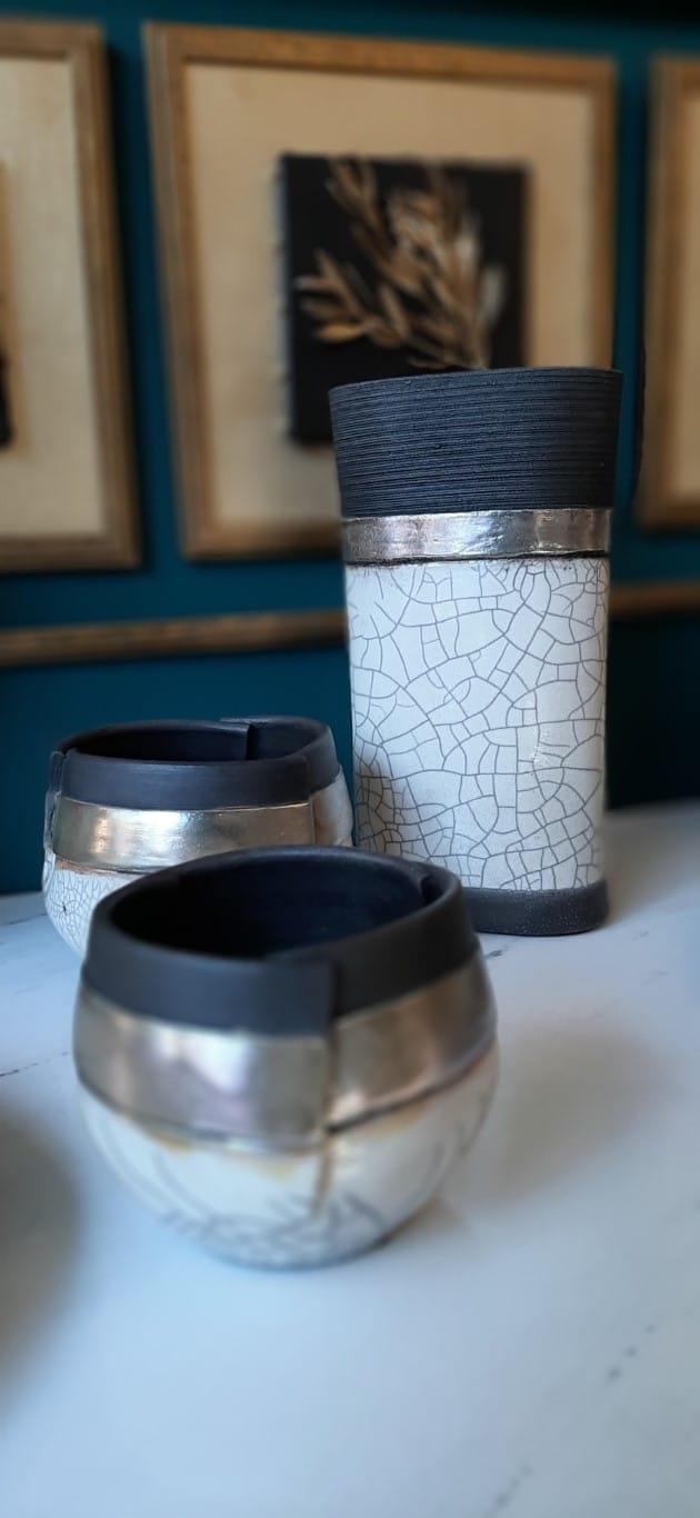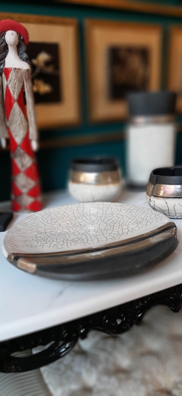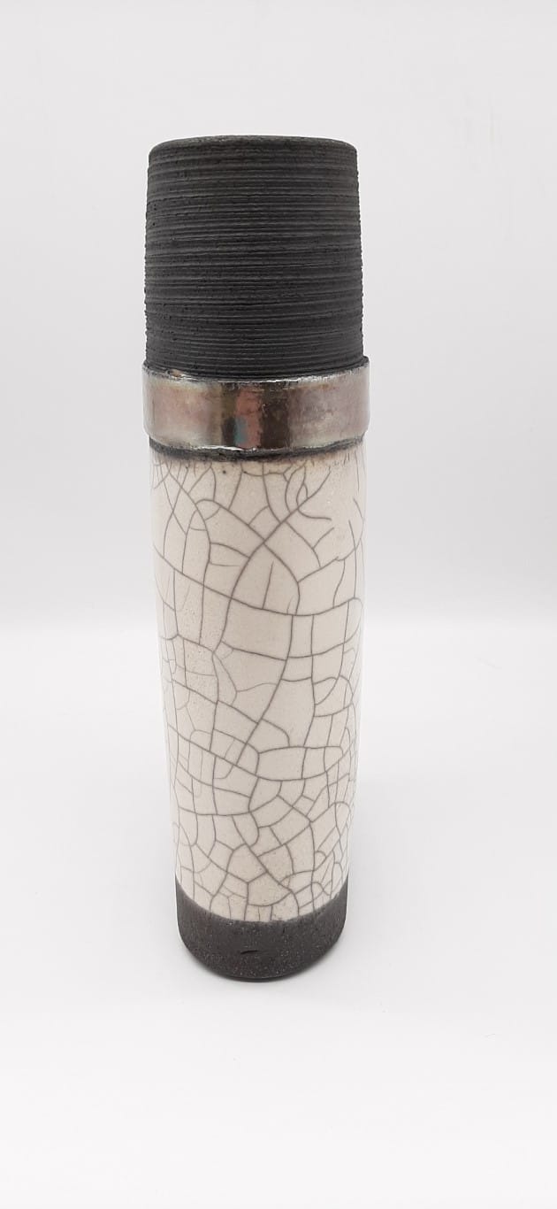 Χειροποίητο κεραμικό βάζο ψημένο με την τεχνική raku σε καμίνι με ανοιχτή φωτιά στους 1000 βαθμούς Κελσίου.