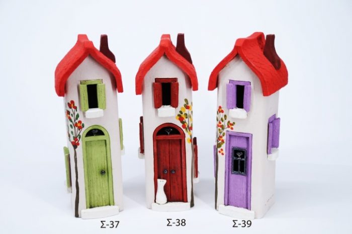 Χειροποίητα κεραμικά σπιτάκια σε διάφορα σχέδια, μεγέθη και χρώματα.”Χτίστε” το δικό σας χωριουδάκι με διαφορετικά σπιτάκια σε μέγεθος και χρώμα και φωτίστε το με κεράκια ή με μόνιμη τοποθέτηση μικρής λάμπας στο εσωτερικό τους. Το κάθε σπιτάκι είναι υπογεγραμμένο και συνοδεύεται από κάρτα με την υπογραφή και τις σκέψεις του καλλιτέχνη. Ελληνική δημιουργία.