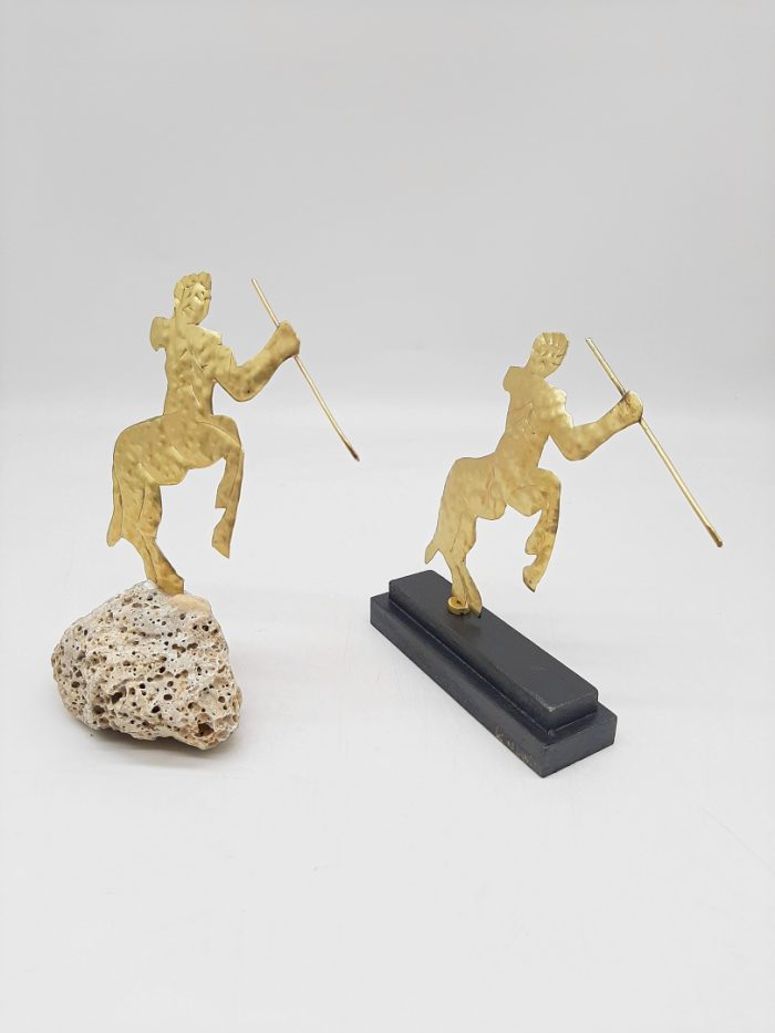 Χειροποίητος Κένταυρος από φύλλο ορείχαλκου, πάνω σε ξύλινη βάση στο χρώμα του γραφίτη, ή πάνω σε φυσική πέτρα που προσομοιάζει με βράχο, από τη θάλασσα του Παγασητικού.