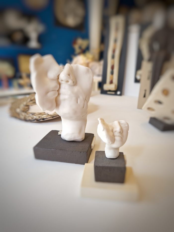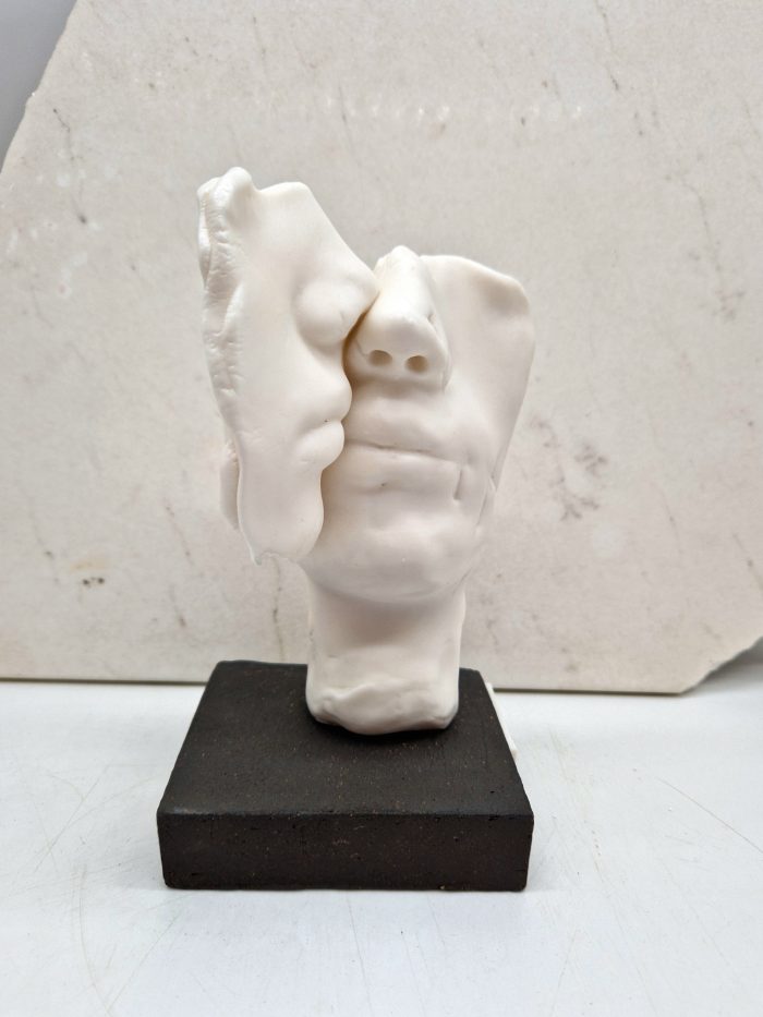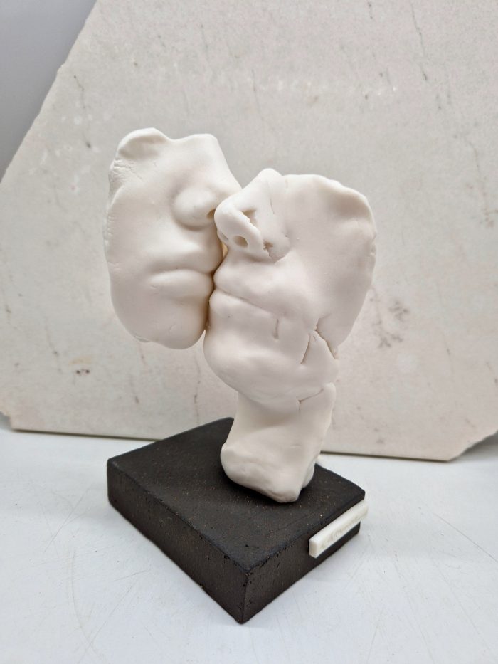 Χειροποίητο, κεραμικό, επιτραπέζιο διακοσμητικό γλυπτό που αναπαριστά πρόσωπα από πορσελάνη ενωμένα με ένα φιλί. Θα το βρείτε και σε μικρότερο μέγεθος.
