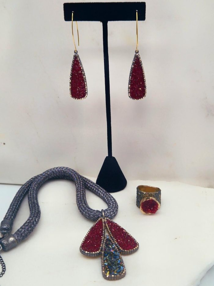 Τα κόσμηματά της έχουν υποστεί επεξεργασία διαμανταρίσματος που τους προσδίδει ιδιαίτερες λάμψεις και είναι εμβαπτισμένα σε ειδικά βερνίκια ώστε να μην αλλοιώνονται στο χρόνο.